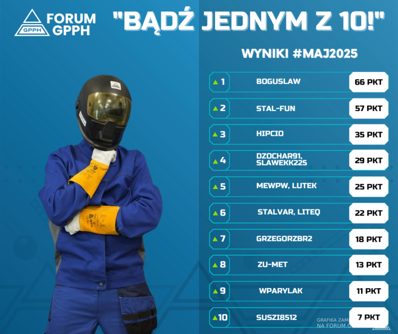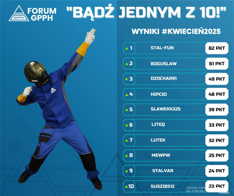 Nadszedł czas ⏰ na ogłoszenie wyników konkursu, w którym przygotowaliśmy nagrody pieniężne dla 10 pierwszych miejsc, użytkownicy którzy zdobyli najwyższą pozycję w Rankingu Miesięcznym forum za miesiąc maj 2025 (do dnia 30.05.2025, do godz. 12:00). Nagrody pieniężne można wykorzystać wyłącznie na zakupy naszych produktów👌💸