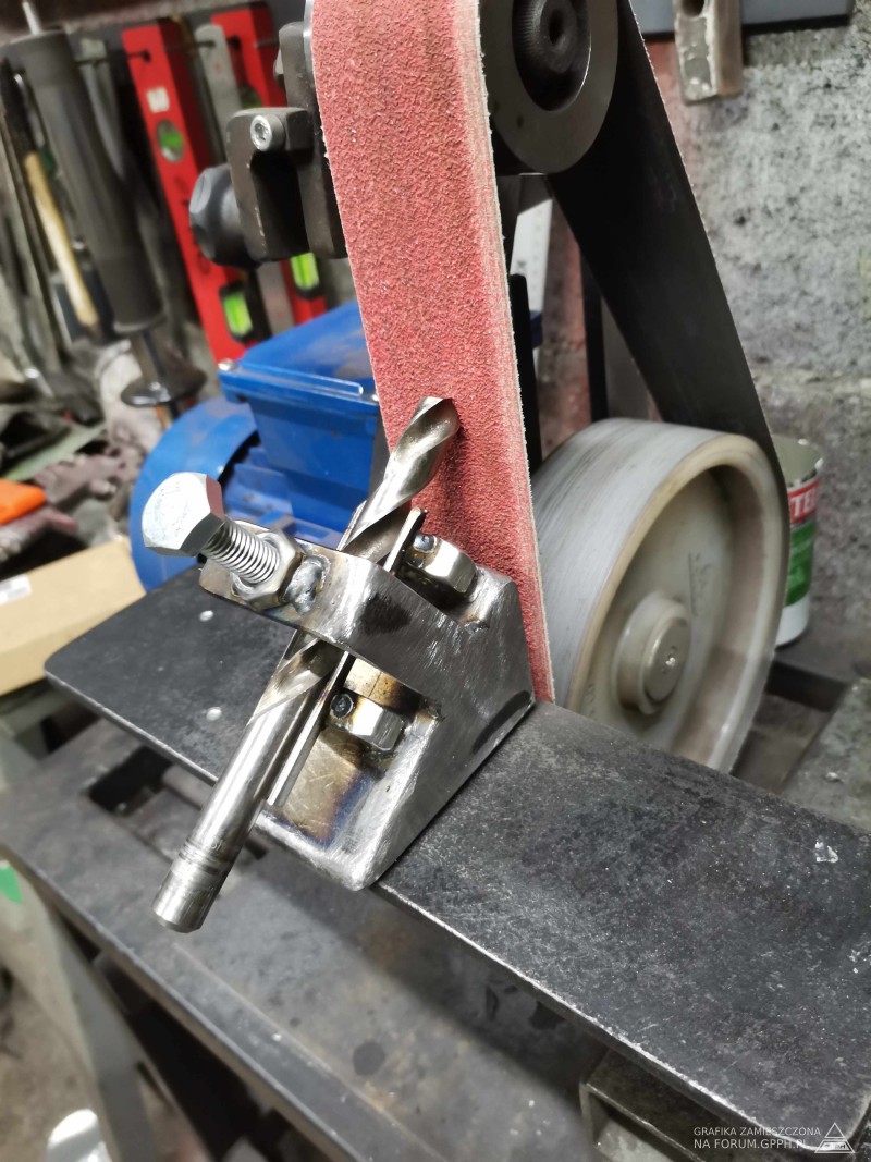 Przystawka do ostrzeenia wierteł na szlifierce taśmowej gotowa. Już są pierwsze rezultaty w postaci naostrzonych wierteł 💪💪💪