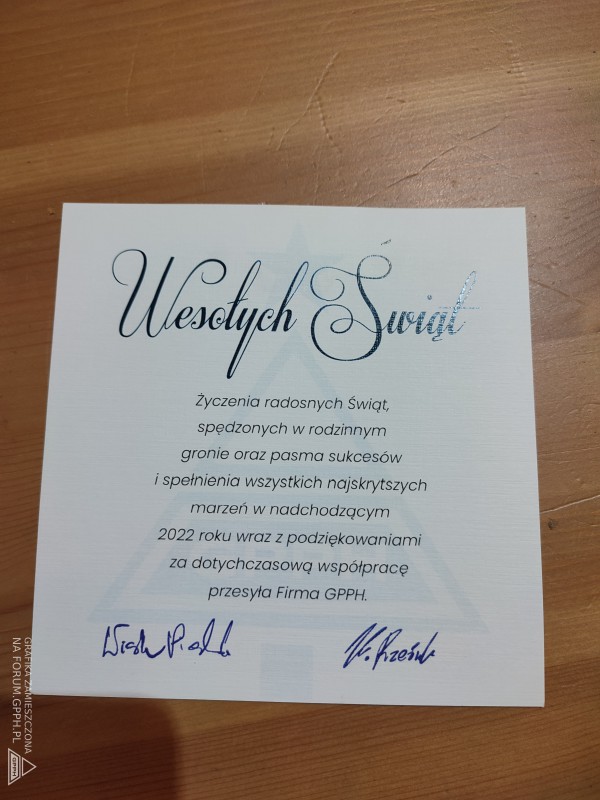 Dziękuję GPPH za kartkę , w dzisiejszych czasach już ich coraz mniej tylko nic nie znaczące SMS. Dla całego zespołu @GPPH oraz forumowiczom szczęśliwego nowego Roku 2022.